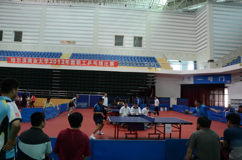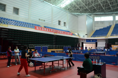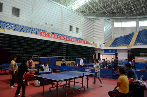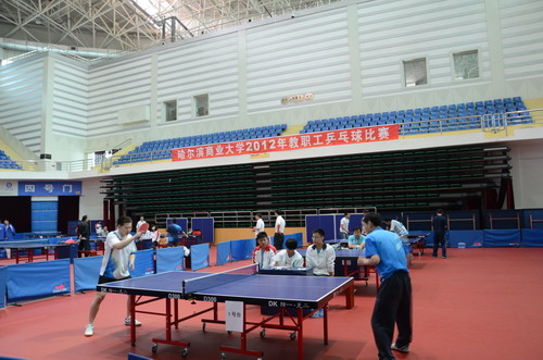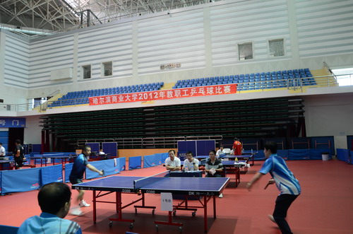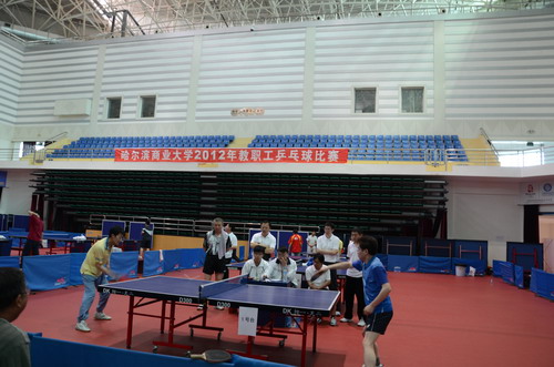 2012年5月19日上午8:30,校工会举办的“迎校庆”教职工乒乓球比赛在北区体育馆拉开了帷幕,各分工会有11个代表队近80余人参加了比赛,本次比赛共设立了男子团体、女子团体、男子单打、女子单打四个项目。