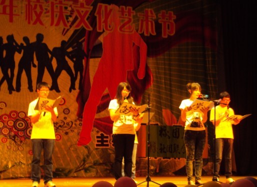25日于B区大礼堂举办的文艺晚会中,校团委刘禹辰老师、校级学生组织代表及各协会成员共同观看了由我校各学生社团演绎的精彩节目,节目展示了丰富多样的校园生活,表达了对母校生日的祝福。社工协会及人力资源协会寓意深刻的话剧表演发人深省,社联文艺部的歌曲联唱抒发了对母校深深的热爱。精彩的节目为在场观众带来一场视听盛宴,迎校庆“集合在阳光下”社区文化广场也在热烈的掌声中落下帷幕。