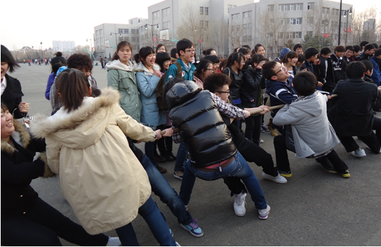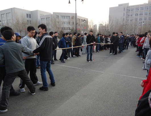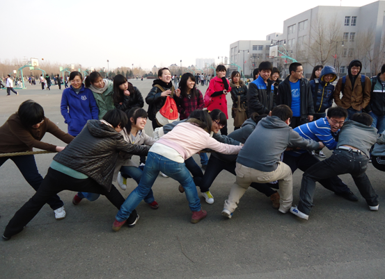 本次比赛共六支队伍参赛,比赛过程中,各班自发组成拉拉队为本班同学加油,加油声此起彼伏,响彻云霄。经过激烈的角逐,最终2010级理化班和2011级管理班脱颖而出,进入决赛。决赛中,双方实力势均力敌,红色标记在两队之间左右移动,各队队员均使出九牛二虎之力,想为班级争得荣誉。通过意志与耐力的比拼,最终2011级管理班获得比赛的胜利。
