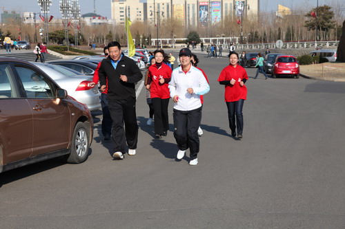 启动仪式结束后,进行了教职工健身长跑活动,共有100多名教职工报名参赛,经过紧张激烈的角逐,王秀超(财务处)、王宗婉(财务处)、邹颖(财务处)、王立(药学院)、沙靖宇(经济学院)、李萍(法学院)、杨美芬(财务处)、白璐(会计学院)获得女子组前八名;高志勇(财务处)、邵延学(财政与公共管理学院)、秦力昆(经济学院)、陈铭(计算机学院)、张鹏举(设计艺术学院)、任君刚(药学院)、张小峰(财政与公共管理学院)、董兵权(金融学院)获得男子组前八名。