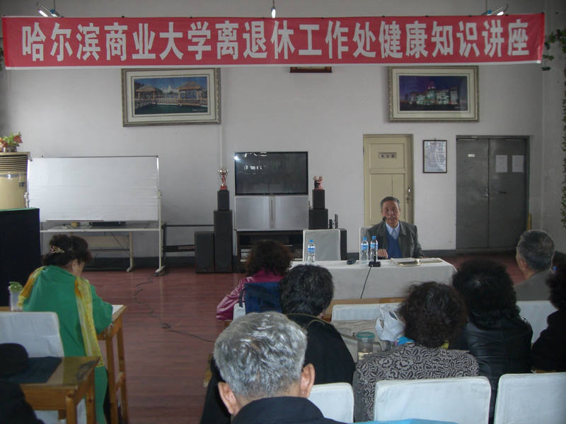 喜迎校庆,关爱生命,健康生活。按照离退休工作处2012年工作计划,离退休处于2012年4月24日上午9点在离退休人员活动中心举办了“医疗专业知识讲座”, 讲座邀请了省老科协科学报告团原省二院院长、我国著名药学专家冯克玉教授,陪同冯教授讲座的还有原黑龙江省卫生厅副厅长李洪涛教授,近百名离退休人员参加。