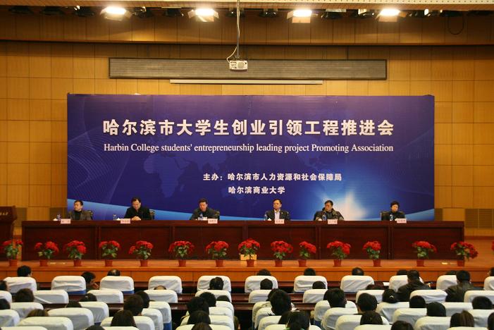 4月6日由哈尔滨市人力资源和社会保障局与哈尔滨商业大学共同主办的哈尔滨大学生创业引领工程推进会在哈尔滨商业大学成功举办。