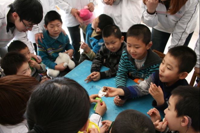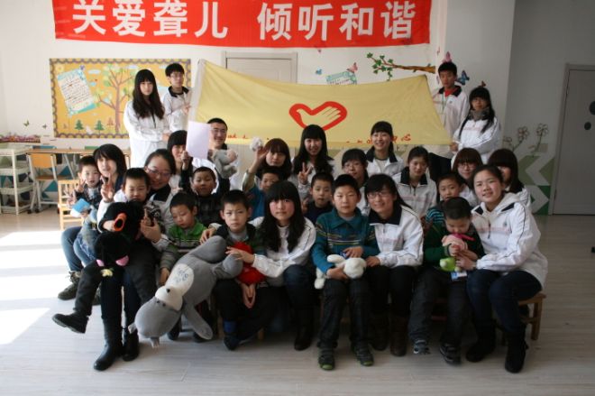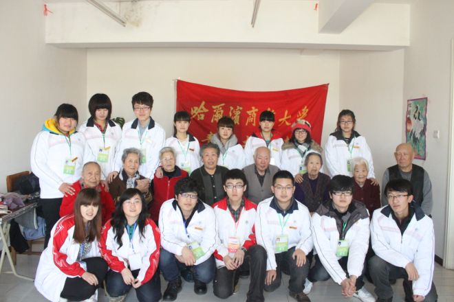 随后,记者来到松北区“语亦丰”聋儿康复中心和松北区敬老院,在这里,也活跃着来自哈尔滨商业大学青年志愿者服务中心的同学们。当孩子和老人们见到相熟已久的志愿者,又露出了会心的笑容。