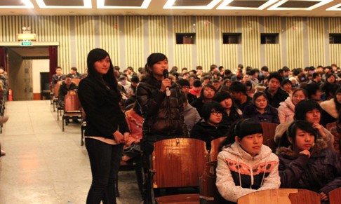 报告会上,既有动情的讲述,也有真诚的交流、沟通,当有同学问学习标兵王悦“你不认为学习是件苦差事吗?你真的发自内心的喜欢学习吗?”王悦随即反问道:“又有什么工作是不辛苦的呢?”随即又补充道:“也许成功是有捷径的,可是我还没有找到啊”。机智的作答彰显了她幽默的一面,同学们报以赞许的掌声。当有同学问王俊生:“你为了帮助姜建,牺牲了很多个人时间,有没有动摇过?”王俊生坦率的说:“有过,但我一想起曾答应姜建父亲照顾姜建,就会坚持下去,我不能照顾他一辈子,我希望姜建毕业后会遇到更多的好心人!”朴实的话语让人为他的善良、淳朴深深感动。