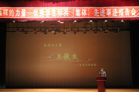 “榜样的力量”优秀学生标兵(集体)先进事迹系列报告会是校团委为响应党委提出的“深化校风学风教育,发挥先进典型引领示范作用”号召,同时深入贯彻“学生学习工作会议”精神而开展的主题教育活动。是2011年12月开展的“优秀学生标兵(集体)评选表彰活动的深化与延续。为此,校团委从2011年度评选出的先进典型中选拔出自立自强、重信守诺、科技创新、社会实践、刻苦学习五个方面的先进个人典型以及两个优秀集体典型,以“走近你、学习你、成为你”为主题,用身边人讲身边事的形式开展事迹宣讲。三场报告会中,全校18各学院近3000名学生聆听了先进典型“可信、可学”的生动事迹,感受了榜样催人奋发的精神力量。