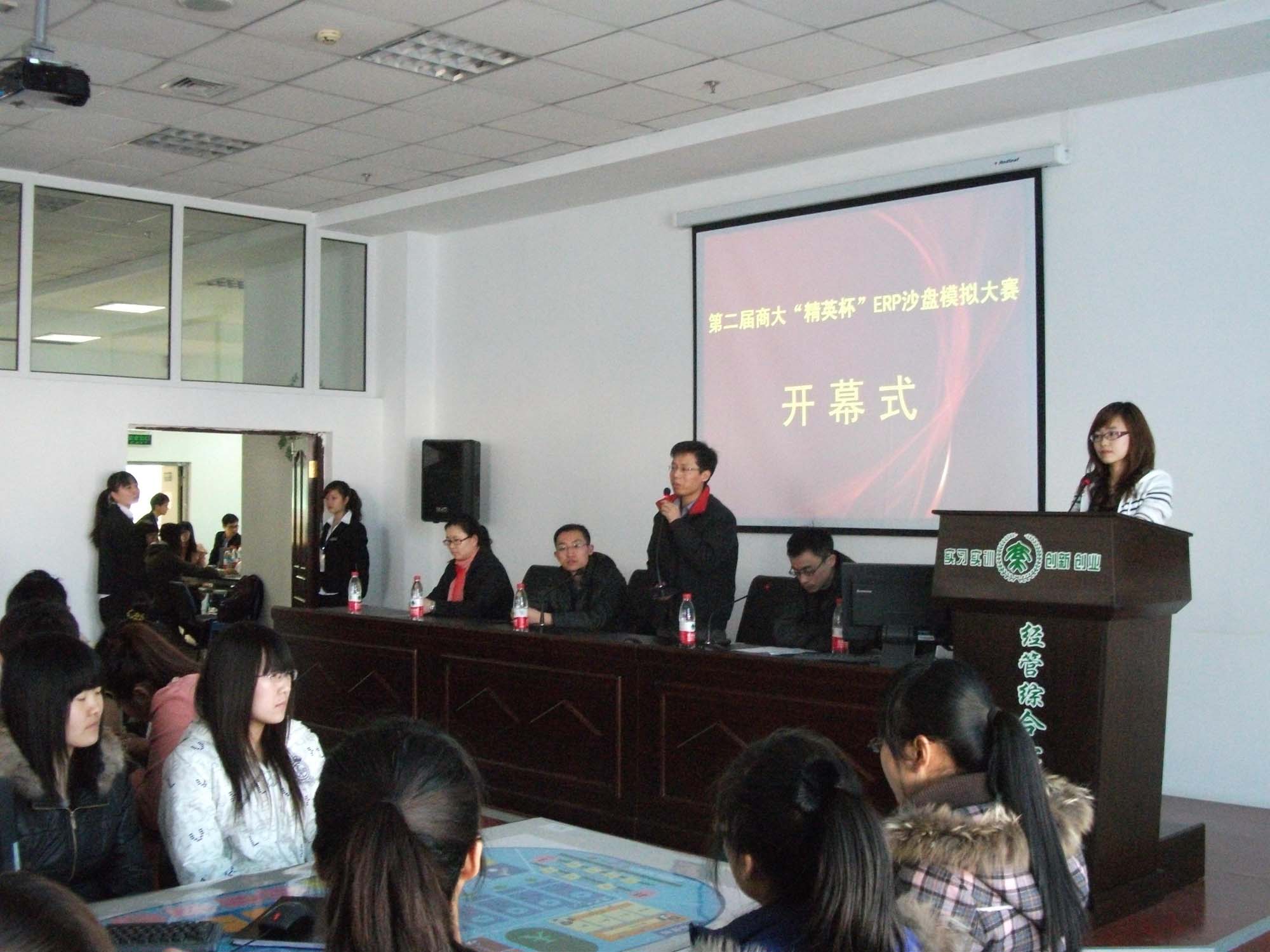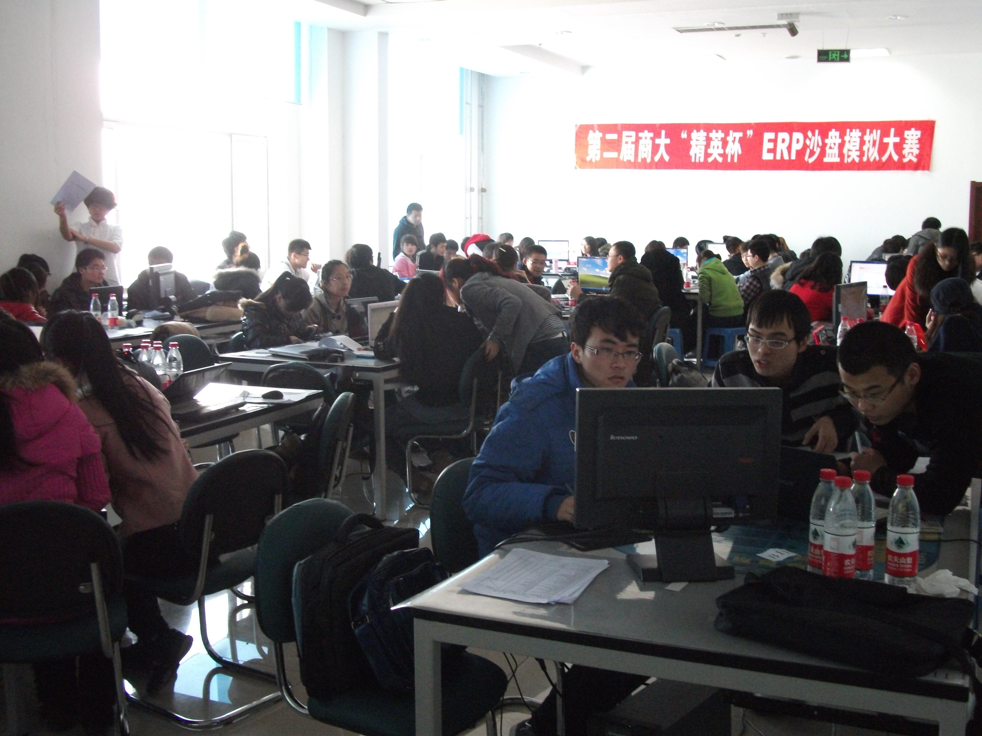 2012年3月25日,由经管综合实践中心和校大学生创业创新联盟联合举办的第二届商大“精英杯”ERP沙盘模拟大赛成功落下帷幕。大赛共有来自11所高校的160名选手参加了比赛。此次活动的目的在于为哈尔滨市各高校的ERP精英提供一个交流切磋的平台,为即将到来的全省ERP沙盘大赛进行一次模拟练兵。
