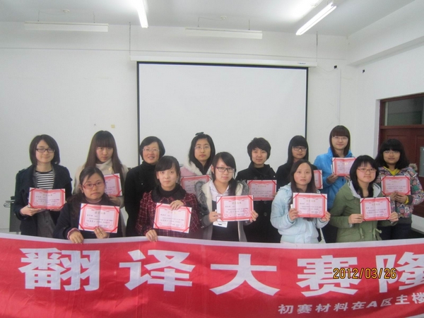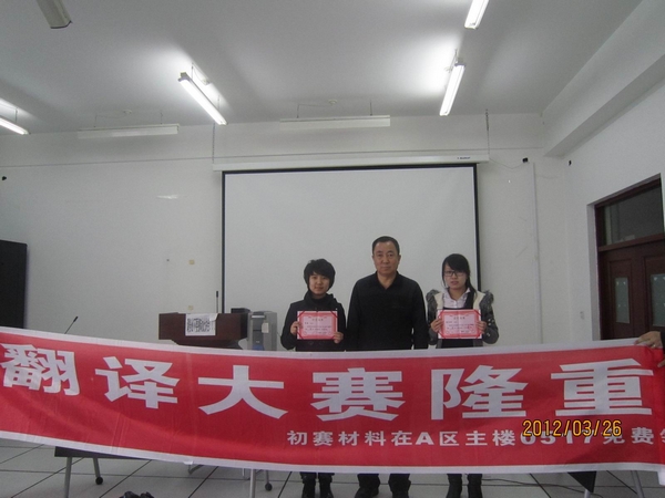 为弘扬校园文化,营造校园外语氛围,提高外语翻译水平,哈尔滨商业大学外语学院和校团委于2012年3月联合举办校园首届翻译大赛。赛制分为初赛和复赛,初赛有1000多名学生参加,由外语学院教师采取盲审的方式筛选;决赛采取现场笔译的方式,最终评出二等奖2名,三等奖2名,优秀奖5名,纪念奖6名。09级外语专业4班的张夏瑜同学,10级商务英语1班的许盟同学,10级金融学2班的宋萌同学,09级商务英语2班的何佳嵘同学分别获二、三等奖。校团委、外语学院对每个获奖者颁发了荣誉证书及奖品。