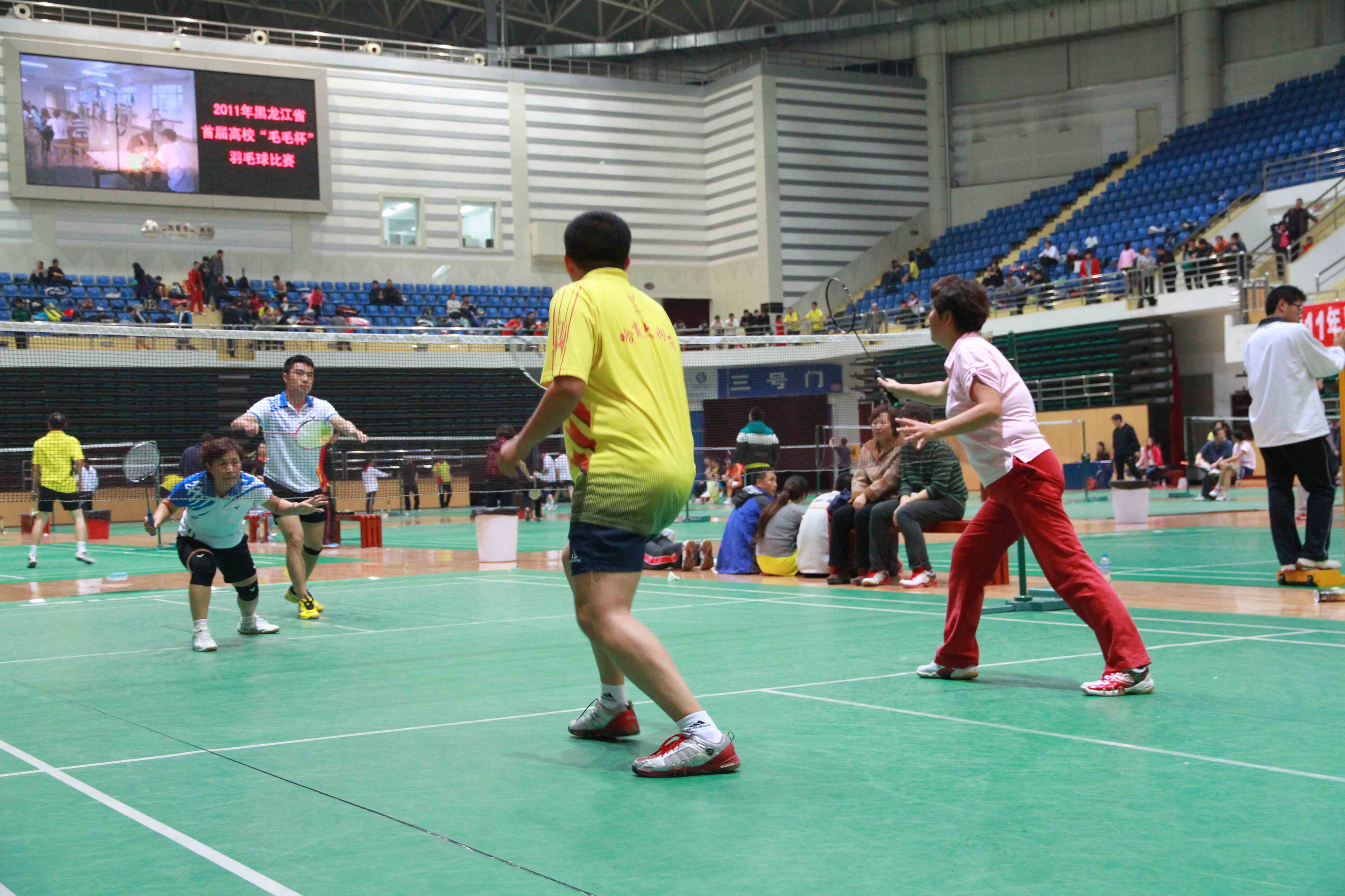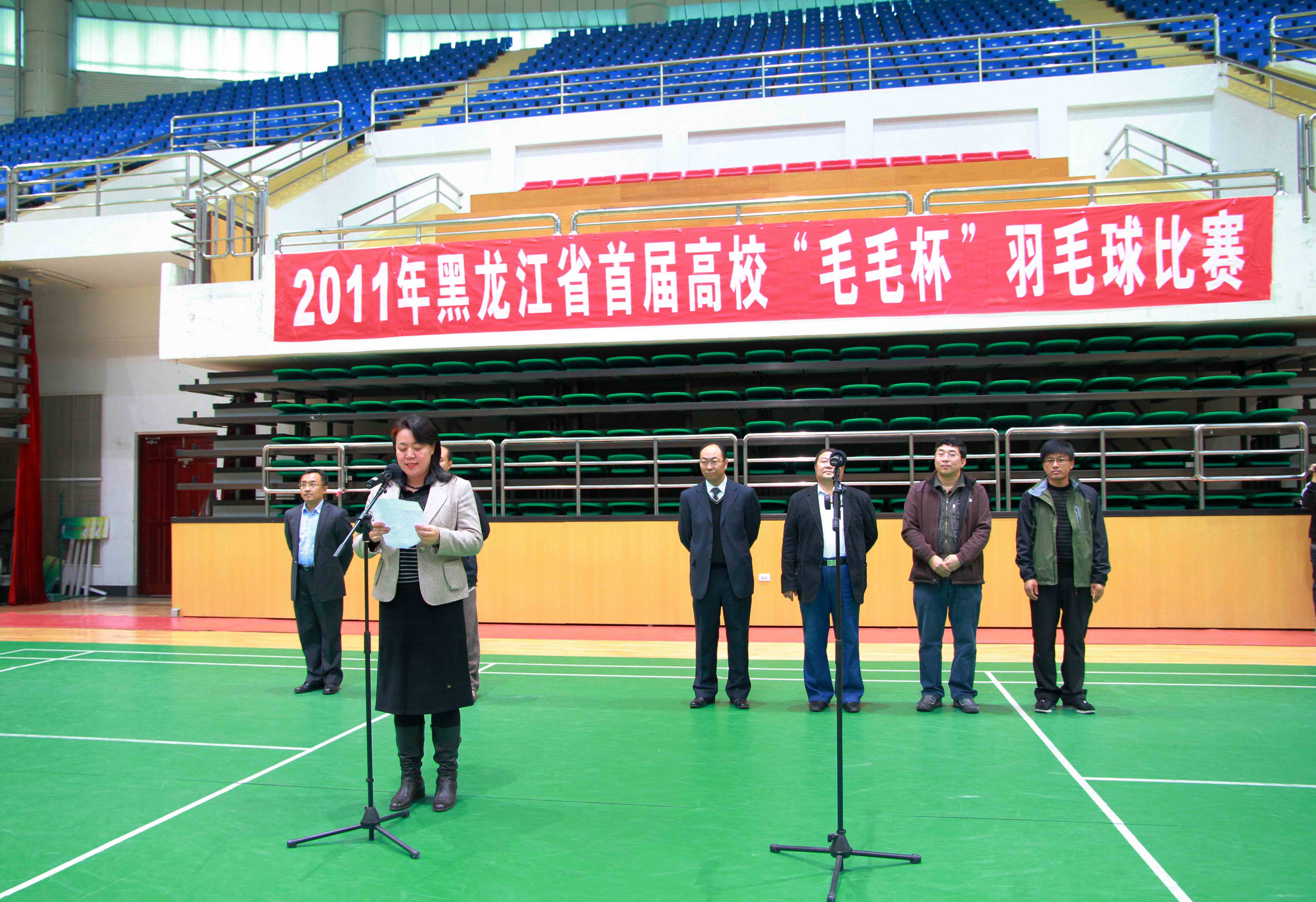 10月28日至30日,2011年黑龙江省首届高校“毛毛杯”羽毛球比赛在哈尔滨商业大学A区体育馆举行,本届比赛由黑龙江省教育厅主办,哈尔滨商业大学承办。吸引了来自哈尔滨工业大学、哈尔滨工程大学、佳木斯大学、东北林业大学等19所高校的领队、教练员、运动员共计421人参加本次赛会。经过两天半的角逐,哈尔滨工业大学代表队取得了教工混合团体第一名,哈尔滨工程大学、哈尔滨体育学院代表队分别获得学生甲乙组团体第一名。我校学生在高琦光教练的带领下取得了学生甲组女单、女双第一名、男单第二名、混双第三名的好成绩。通过比赛,为广大羽毛球爱好者提供了一个以球会友、展示自我的平台,同时也推动了我省高校羽毛球运动的发展与提高。