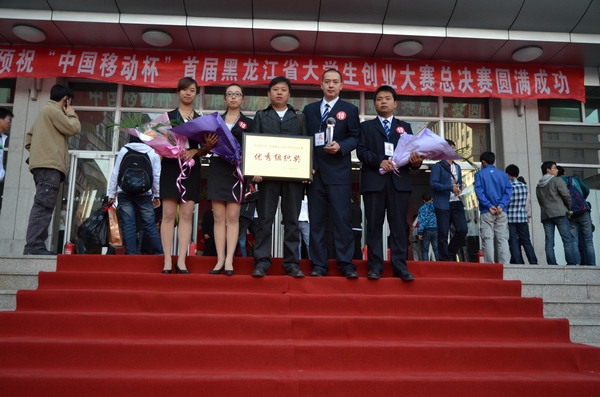 9月20日下午,首届黑龙江省大学生创业大赛决赛暨颁奖典礼在东北林业大学举行。黑龙江省副省长程幼东、教育部全国高校学生信息咨询与就业指导中心副主任韩呼生、省教育厅常务副厅长魏兆胜等领导出席并讲话。我校毕业生就业指导中心闵宏飞副主任、夏洪起老师带资生源-养生蜂蜜水团队(由管理学院程珑、孙成铭、史孟尧、食品工程学院赵鎏銮、财政学院吴思羽组成)参加了决赛。