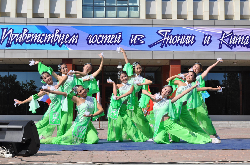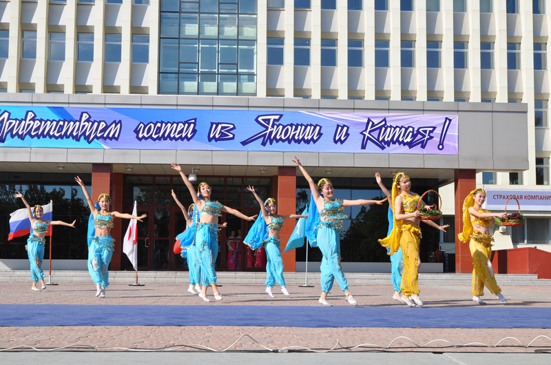 9月22--27日,应俄罗斯萨哈林州文化部的邀请,由国际合作处刘龙洋处长为领队,团委副书记贾妮燕为艺术指导的哈尔滨商业大学大学生艺术团一行13人,赴俄罗斯萨哈林州首府南萨哈林斯克市参加了“2011国际民族文化艺术节”。我校艺术团表演的富有浓厚中国特色的民族舞蹈,受到了观众热烈的欢迎和艺术节组委会的好评。