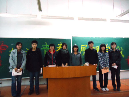 为拓展同学们的知识面,丰富同学们的课余生活,为新同学提供展现自我,实现自我的交流平台。2011年10月24日,由实验班学生会组织的以“绽放青春,展现自我”为题的演讲比赛如期举行。参加此次比赛的选手共有13人,均为2010级和2011级的实验班学生。