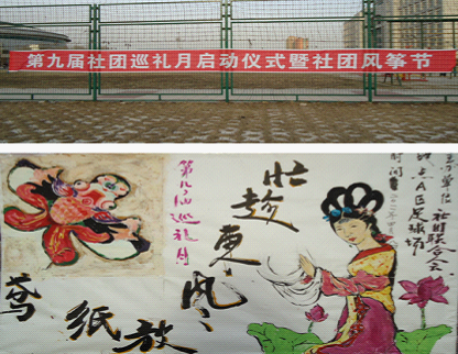 开幕仪式过后,“第九届社团巡礼月”拉开帷幕,风筝节活动正式启动。风筝在蔚蓝的天空越飞越高,同时也象征着社联今后的发展越来越好。足球场上,到处都是社联人的快乐身影。社联各协会同学间不分彼此,在游戏中增进了彼此的感情。除了放风筝,踩气球等游戏也吸引了同学们的兴趣,使本次活动更加精彩。