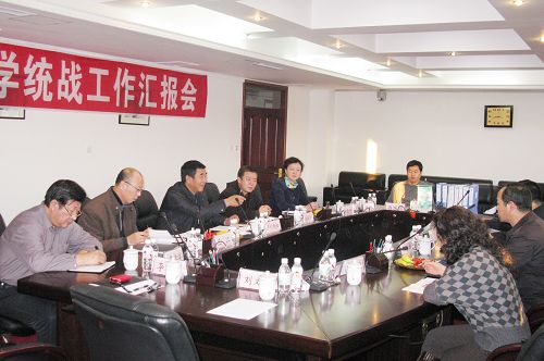 党委书记刘德权同志首先向督查组汇报了我校贯彻落实《关于加强和改进高校统战工作的意见》文件精神的情况。随后,刘书记从强化“四个保障”、推进民主党派及无党派人士工作,实施“三个步骤”、加强党外代表人士队伍建设,抓好“两个关注”、促进民族宗教工作,树立“四个观念”、做好海外统战工作等四个方面,全面汇报了学校统战工作的情况。