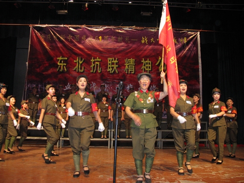 东北抗联精神宣传队,致力于宣传抗联精神,是在抗联老战士、原省政协副主席李敏同志亲自倡导和直接领导下成立的艺术团队。演员由有文艺特长的老战士组成,其中很多都是抗联英雄的后代,主要以部队、学校、企业、机关、社区、农村等为宣传对象。