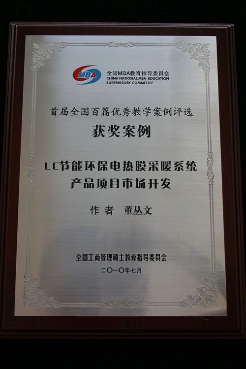 哈商大MBA教育中心任课教师董丛文副教授的《LC节能环保电热膜采暖系统产品项目市场开发》案例被全国工商管理硕士教育指导委员会评选为2010年MBA全国百篇优秀教学案例,为学校争得了荣誉,促进并完善了哈商大MBA案例库建设,为哈商大MBA案例教学作出了突出贡献。