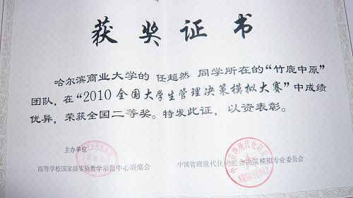 经过激烈的全国大区半决赛和决赛,最终包括哈尔滨商业大学、上海交通大学、西南财经大学、中山大学等64个团队获得了全国总决赛资格。在强手如云、竞争激烈的总决赛中,我校代表队稳扎稳打,凭借不屈不挠、顽强拼搏的精神,最终荣获全国二等奖。我校指导教师杨维芝获得优秀指导教师称号。