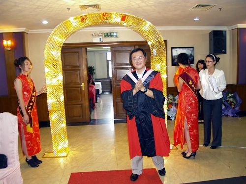 研究生学院院长刘晓辉正在为MBA学员开启学位门