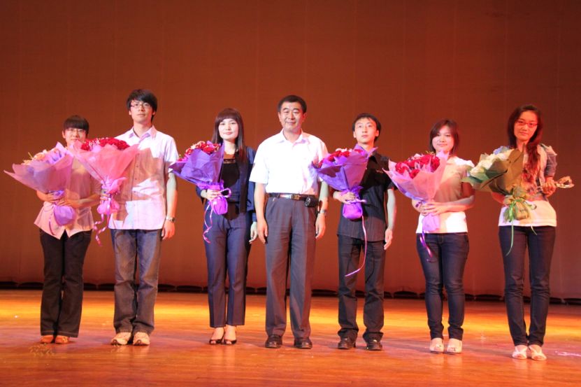 与会领导和首届学生“感动校园”获奖团体及个人合影