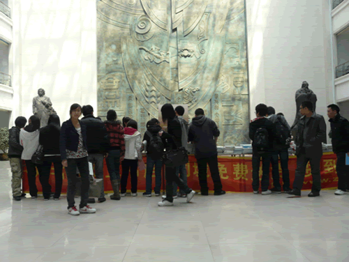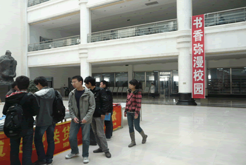 在“4月23日——世界读书日”这个特殊的节日里,图书馆在二楼大厅举办了“让阅读成为习惯,让阅读融入生活”读者签名活动,学生读者纷纷拿起笔,踊跃在几米长的条幅上签下自己或豪放潇洒,或婉约娟秀,且极富个性的名字。楷书、行书、草书,应有尽有,风格各有千秋,但都表达了同样庄重的意愿和承诺:与书为友,快乐阅读。