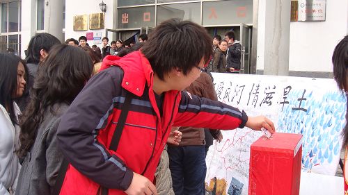 由校党委号召、校团委发起、校学生会、校学生社团联合会组织的“每人捐献一瓶水,抗旱救灾献爱心”募捐活动今天已接近尾声。据统计,在历时三天的捐款活动中,共募得善款31317.8元,其中包括校学生社团联合会及各协会捐款1651.2元,还包括部分学院单独募捐的善款,如食品工程学院捐款6451.3元,旅游烹饪学院捐款3487.3元,法学院捐款1810元,药学院捐款798元。所有善款现已汇总至校团委,校团委将于近期联系捐赠事宜,将这笔凝聚了商大师生对灾区人民拳拳爱心的善款送达灾区。