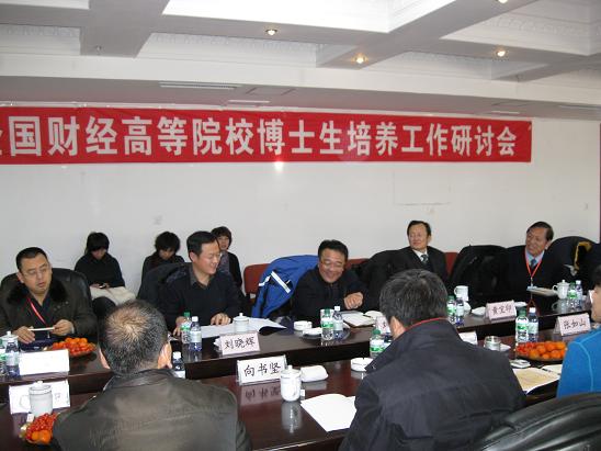 2月4日,由我校主办的全国财经高等院校博士生培养工作研讨会在北校区举行。中央财经大学、上海财经大学、江西财经大学、浙江工商大学、中南财经政法大学、首都经济贸易大学、对外经济贸易大学、山西财经大学、天津财经大学等全国11所财经类博士单位研究生部(处)的负责人及部分院校的主管校领导参加了会议。副校长刘雪松教授出席了会议。研究生学院刘晓辉院长主持开幕式。研究生学院全体工作人员听取了会议。国务院学位办文理医学科处处长黄宝印出席会议并发表了重要讲话。