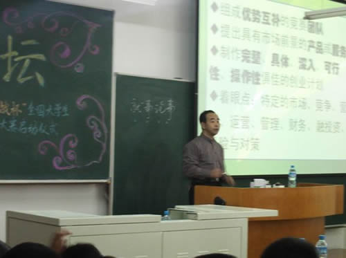4月10日下午,由校团委、研究生学院主办、校科协承办的“太阳岛”讲坛暨我校第七届“挑战杯”大学生创业计划大赛首期培训讲座在A区3201教室成功举办。