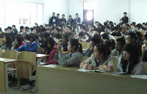 讲座开始后,马老师首先介绍了“挑战杯”赛事的历史及当前的发展状况、趋势,接着围绕创业计划书的写作这一主题,通过生动的实例并结合自己多年的经验为在场的同学们进行了生动的讲解。讲座现场气氛热烈,座无虚席,不少同学认真的做着笔记。在长达两个多小时的讲座中,随着马老师生动的讲解,同学们或聚精会神,或会心微笑,或若有所思,感受着智慧的启迪和思维的碰撞。最后,在热烈的掌声中,一场生动的讲座圆满结束,不少同学意犹未尽,仍围住马老师进行着交流、咨询。