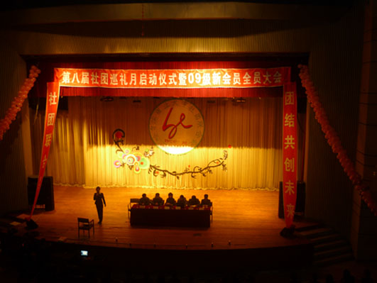 3月29日晚,第八届社团巡礼月启动仪式暨09级新会员全员大会在我校东区大礼堂隆重举行。校团委副书记,社团联合会指导老师贾妮燕老师、南、北校区社团联合会会长、各社团社长及社团代表等到场参加了启动仪式。
