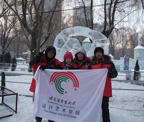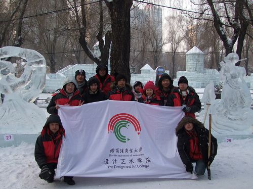 另悉,2009年12月27、28日,在兆麟公园举行的第七届黑龙江省大学生冰雕艺术设计大赛中,设计艺术学院师生不畏风雪和严寒,经过2天的激烈奋战,最终有4组作品从109个冰雕作品中脱颖而出:陈拓、张阿香、杨瀚同学的作品《和谐空间》获得最佳创意奖,谢武欢等同学的作品《海豚之恋》、陆轶等同学的作品《共同思考》和权赫丹等同学的作品《童趣》获得优秀奖,并顺利晋级第四届全国大学生冰雕艺术设计大赛。