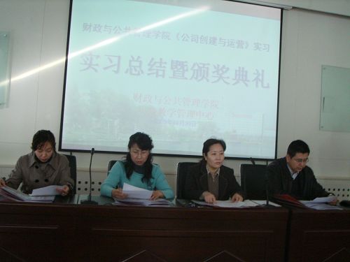 本次实习圆满成功,特别感谢实践教学管理中心和财政与公共管理学院的大力支持。实践教学管理中心主任张莉教授、财政与公共管理学院副院长孔巍微教授、实践教学管理中心副主任鲁啸军副教授及部分教师出席了实习总结及颁奖典礼大会。