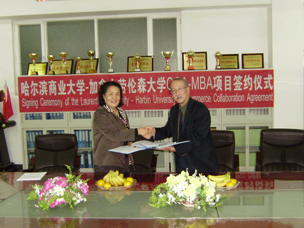 2009年10月19日,“哈尔滨商业大学--加拿大劳伦森大学3+1+1项目”合作意向协议(Collaboration Agreement of the 3+1+1 Program between Harbin University of Commerce and Laurentian University)签署仪式在哈尔滨商业大学会计学院隆重举行。会计学院院长唐现杰教授、加拿大劳伦森大学MBA中心主任Peter Luk教授在签约仪式上分别致辞并签署合作意向协议。