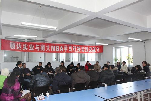 2009年11月28日,哈尔滨商业大学MBA2008秋季班、2009级春季班及2009级秋季班学员到哈尔滨顺达实业发展有限公司进行了企业实践对接。MBA教育中心副主任宋晓洪,管理学副院长、市场营销任课教师周游老师,组织行为学任课教师沈云岗老师,企业营销策划任课教师董丛文老师,战略管理任课教师徐辉老师参加本次活动。