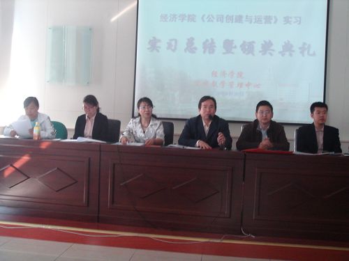 本次实习圆满成功,特别感谢实践教学管理中心和经济学院的大力支持。经济学院院长赵德海教授、实践教学管理中心主任张莉教授、副主任鲁啸军副教授及部分教师出席了实习总结及颁奖典礼大会。