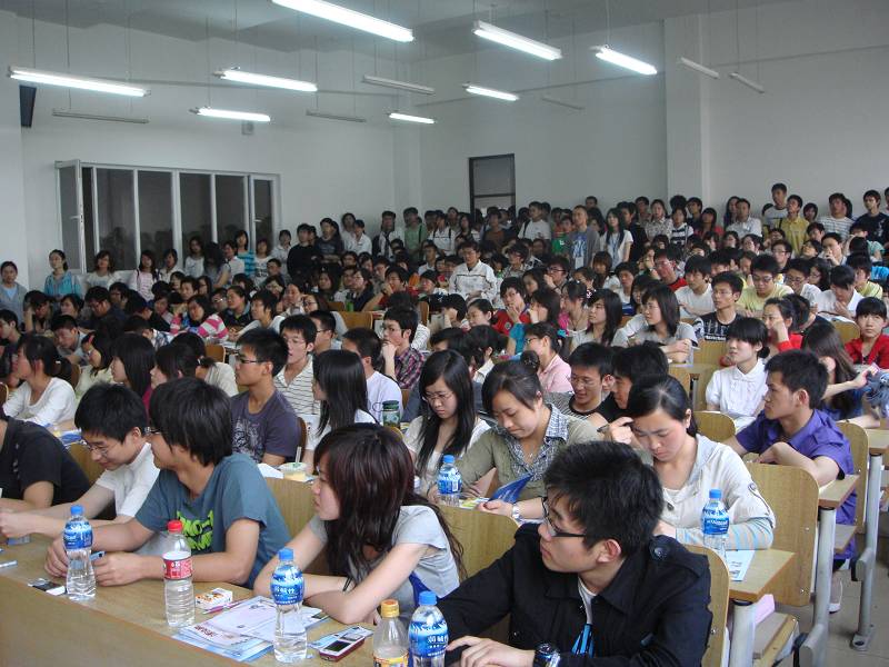 此次讲座是太阳岛讲坛系列讲座之一,由新航道教育公司的徐卡嘉、马朝霞老师担任主讲人,这是一次介绍英语学习、出国留学与人生规划的公益讲座。两位老师充满激情的讲演、幽默风趣的语言,引发在场同学阵阵热烈的掌声。历时2个半小时的演讲,全场座无虚席,很多同学更是站着听完整场演讲。演讲中,老师们为我们讲述了自己艰苦的创业过程,他们丰富的人生经历更是引起在场同学阵阵赞叹。