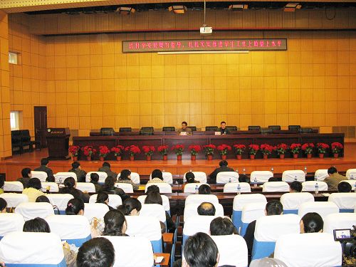 杨殿军副书记指出,当前一些同志对新形势下开展大学生思想政治教育工作的任务、特点和规律等,还缺乏足够的认识和研究,工作中存在着内容不新、办法不多、措施不力、针对性不强、适应性不够等问题;学生工作的管理和运行机制还有待于进一步的理顺和完善。这些问题的存在,在一定程度上影响了大学生思想政治教育工作的效果和人才培养的质量。他结合当代大学生的思想动态和行为特点,把科学发展观的理论与学生的工作实践密切结合,提出了要按照科学发展观的要求探究问题的根源、采取务实的行动、解决现实的问题、明确未来的方向。
