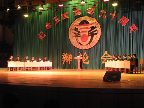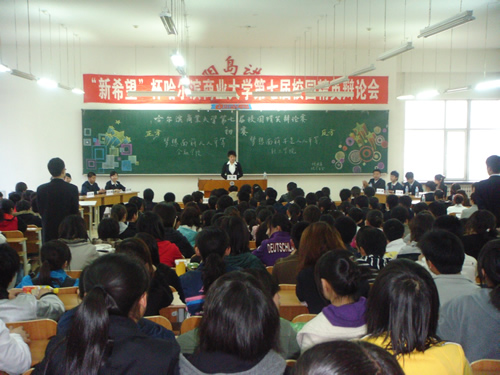 2009年4月27日下午,校团委纪念五四运动九十周年系列活动之“新希望”杯哈尔滨商业大学第七届校园精英辩论会决赛在我校东区大礼堂成功落下帷幕,至此,历时12天的辩论会取得了圆满成功。