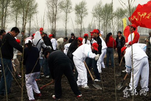 上午9点,我校学生代表身着统一服装,携带我校校旗、团旗及植树工具准时来到活动现场,会同哈师大、黑龙江科技学院等省直高校学生代表、武警官兵、北京奥运会、哈尔滨大冬会志愿者代表、省青联委员和团省委机关干部等社会各界青年代表与老团干部代表来到植树现场,大家挥锹铲土,扶苗培土,一上午的时间便在万宝镇公路沿线20亩的土地上栽种了3000余棵杨树苗,为当地增添了新绿。
