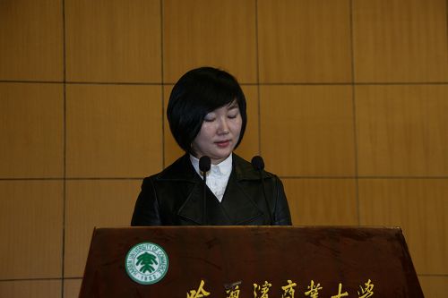 世华财讯副总经理罗丹女士向大会致辞,我校党委宣传部部长李德学教授宣读了获奖名单。各位领导为东北赛区获奖个人及团体颁发了证书。获奖单位代表--辽宁对外经贸学院财经系主任赖忠孝、最佳指导教师代表哈尔滨商业大学庞海峰、获奖学生代表相继发言。颁奖典礼在热烈的氛围中结束。