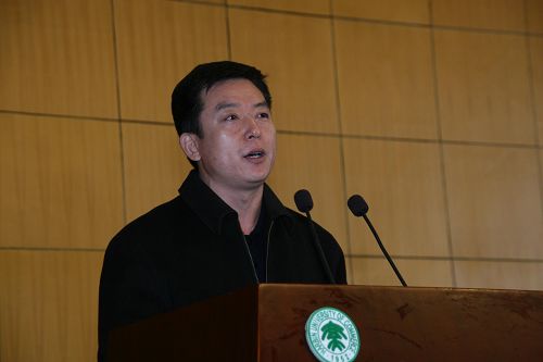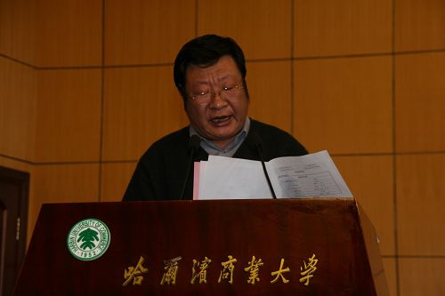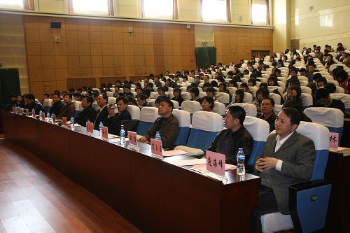 我校党委副书记杨殿军教授代表学校党委和领导班子发表了热情洋溢的讲话,杨书记讲到:“此次大赛,范围之大、人数之多、影响之广、效果之好,令人倍受鼓舞。更重要的是:通过大赛,学生的智慧得到了激发,学生的知识得到了检验,学生的个性得到了张扬,学生的才华得到了展现。由此可能引发我们高校对现行人才培养模式诸如教学内容、教学方法、教学手段等某些方面的反思、批判和修正,更可以说这样的大赛裨益颇多,意义深远,功德无量。”