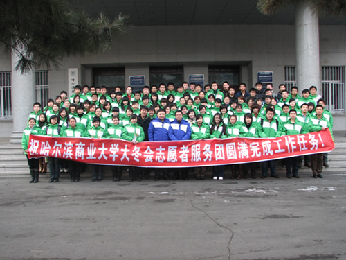 2009年2月7日,我校大冬会志愿者服务团正式组建。这一天,大多数人还沉浸在新年的喜庆气氛中,而经过校团委严格选拔的我校大冬会志愿者们却已经告别了家人,从各地返回到学校,为了一个目标——服务大冬会,汇集到一起。
