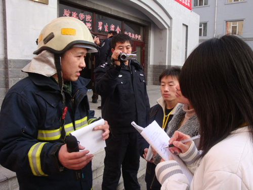 消防队员接受校通社记者采访