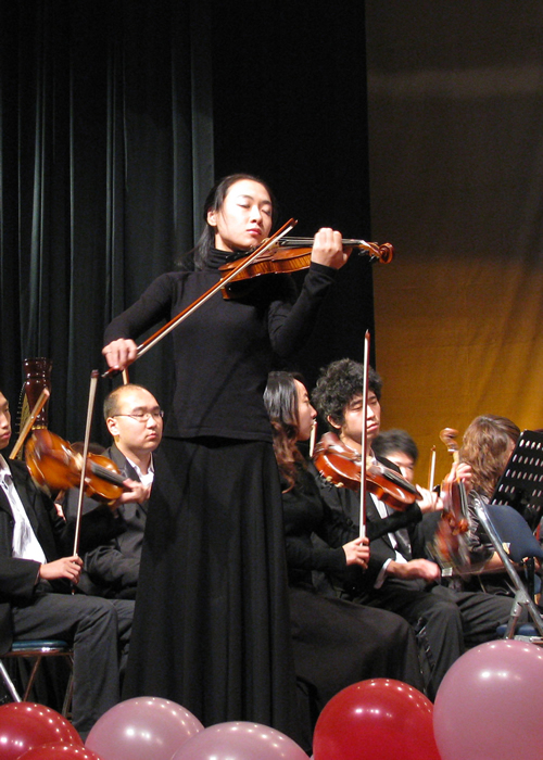 在短短90分钟里,哈尔滨师范大学艺术学院交响乐团为我校学生演奏了中外经典音乐作品《梁山伯与祝英台》、《奇妙的和谐》、《明之恋》、《降E大调协奏曲》、《戈帕克》、《赐给我安宁》、《拉科齐进行曲》、《黄河第四乐章》等曲目。演出结束后掌声经久不息,高雅艺术的熏陶,音乐的魅力令同学们留连忘返。