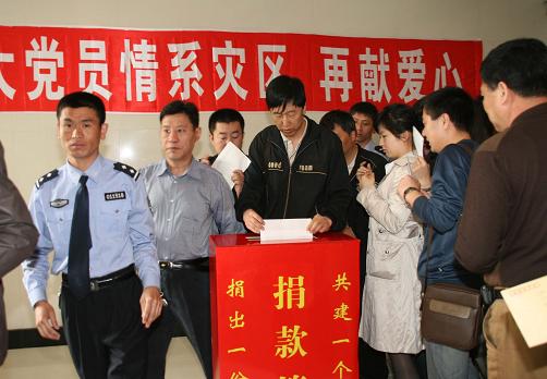 5月22日上午10时,哈商大党员在A区行政中心一楼大厅再次捐款,支援灾区人民重建家园。这是商大师生抗震救灾的第三批捐款。校领导班子成员捐出了自己一个月的工资,其他党员也纷纷以较大的数额表达自己的爱心。本次捐款共计423113.40元。一些民主党派成员和无党派同志也积极参加了捐款活动,共同表达了“地震无情、你我有情”、“支援灾区、人人有责”的真诚情怀。