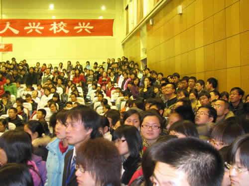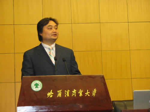哈尔滨商业大学研究生经济学会承办的“商界传媒”2007中国企业家高校巡讲”哈尔滨商业大学站于11月22日在我校专家公寓国际报告厅拉开帷幕。香港凤博集团董事长、22岁的年轻企业家董思阳小姐,青年创业者、哈尔滨IT网首席执行官陆继刚先生亲临现场。金融学院副教授田力博士主持活动,现场不仅座无虚席,连走廊里也挤满了观众。