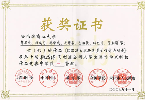 第十届“挑战杯”全国大学生课外学术科技作品竞赛决赛于2007年11月19日在天津南开大学落下帷幕。我校的两部参赛作品均获大赛的三等奖。全国共有31个省区市343所高校的1100件作品获得竞赛资格,其中884件作品进入决赛并进行了展示。参赛作品分为自然科学类学术论文、科技发明制作类作品、哲学社会科学类调查报告和学术论文三大类。
