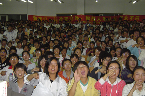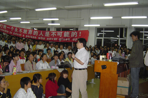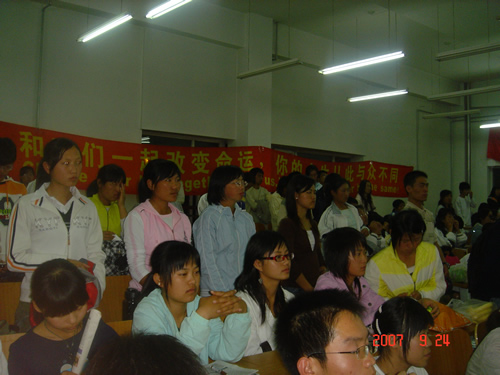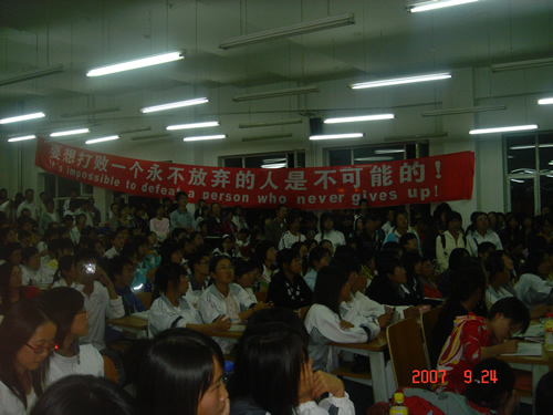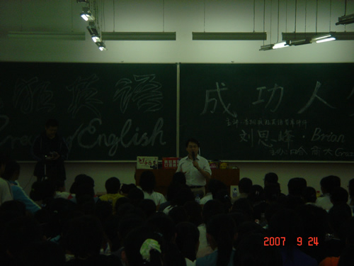 9月24日18:00的4104教室里,一场非同寻常的《疯狂英语与成功人生》全国高校大型巡回演讲之商大站正在疯狂的进行着。