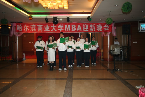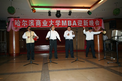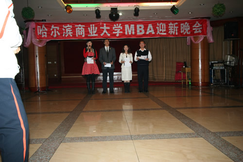 2007年10月13日,为迎接2007级秋季班新学员的到来,在MBA中心领导的大力支持下,由MBA学生联合会组织的迎新晚会在我校南区商大酒店举行。工商管理学院MBA教育中心主任宋晓洪、齐齐哈尔大学经济管理学院国际贸易系主任谢晓丰老师、大庆鸿名教育培训中心校长于波参加了晚会。