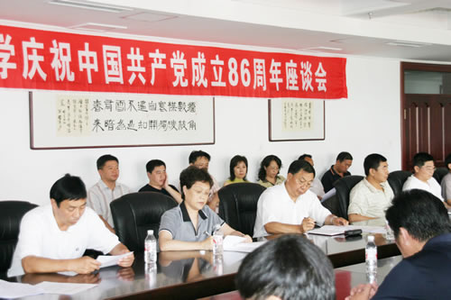 27日下午,学校党委召开纪念建党86周年暨推进“先锋工程”座谈会。会议由纪检委书记黄洁主持。校领导、校党委委员、各党总支(直属支部)书记和副书记、党群部门负责人、教职工党员代表等参加了座谈会。