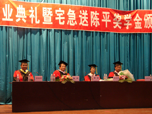 2007年6月30日下午15:30,在哈尔滨商业大学南校区俱乐部,物流学院举办2007届毕业典礼暨宅急送陈平奖学金颁发仪式。学校主管学生工作的领导、学校纪委书记黄洁教授、学生督导刘德广、武振田、物流学院师生参加了会议。哈尔滨商业大学客座教授、北京宅急送快运股份有限公司董事长陈平先生、北京宅急送快运股份有限公司人力资源部郑瑞祥总监专程来物流学院参加宅急送陈平奖学金的颁发仪式。
