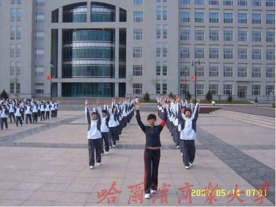 为了提高大学生体育兴趣,增强体育意识,宣传体育精神,培养大学生的团结协作精神和集体荣誉感,在校团委的领导下,校学生会于5月14日清晨6点25分在我校新区下沉广场举办了一场全校性的广播操比赛。